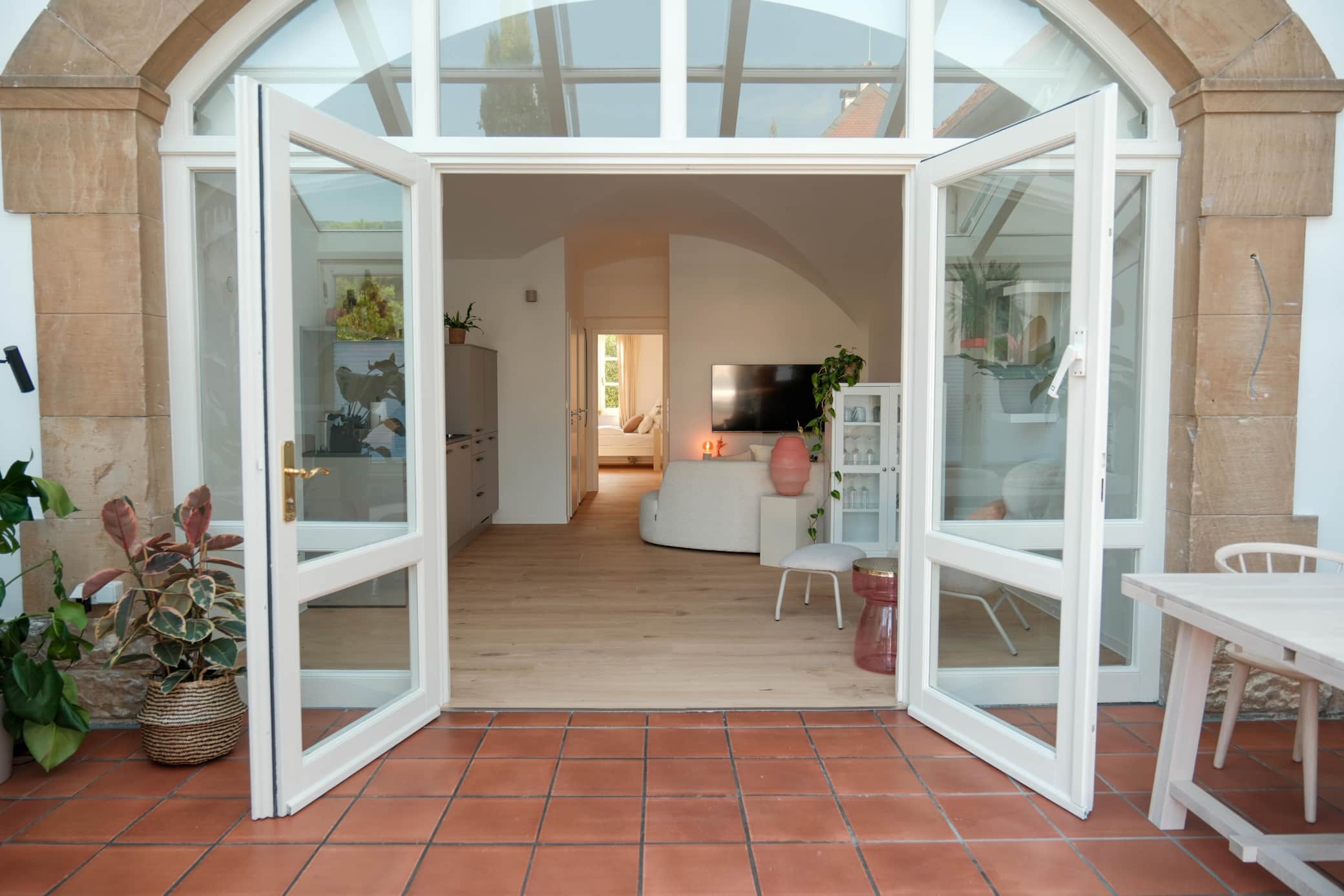 Die Glückskoje ist Teil einer liebevoll ausgebauten Ferienwohnungsanlage in einem historischen Weingut – modern eingerichtet und bestens ausgestattet. Mit Platz für bis zu 4 Personen ist sie flexibel für Familien mit Kindern oder für Freunde geeignet, die gemeinsame Auszeiten genießen möchten. Mit 2 Schlafzimmern, 2 WCs und einem großen Essplatz für gemeinsame Stunden.